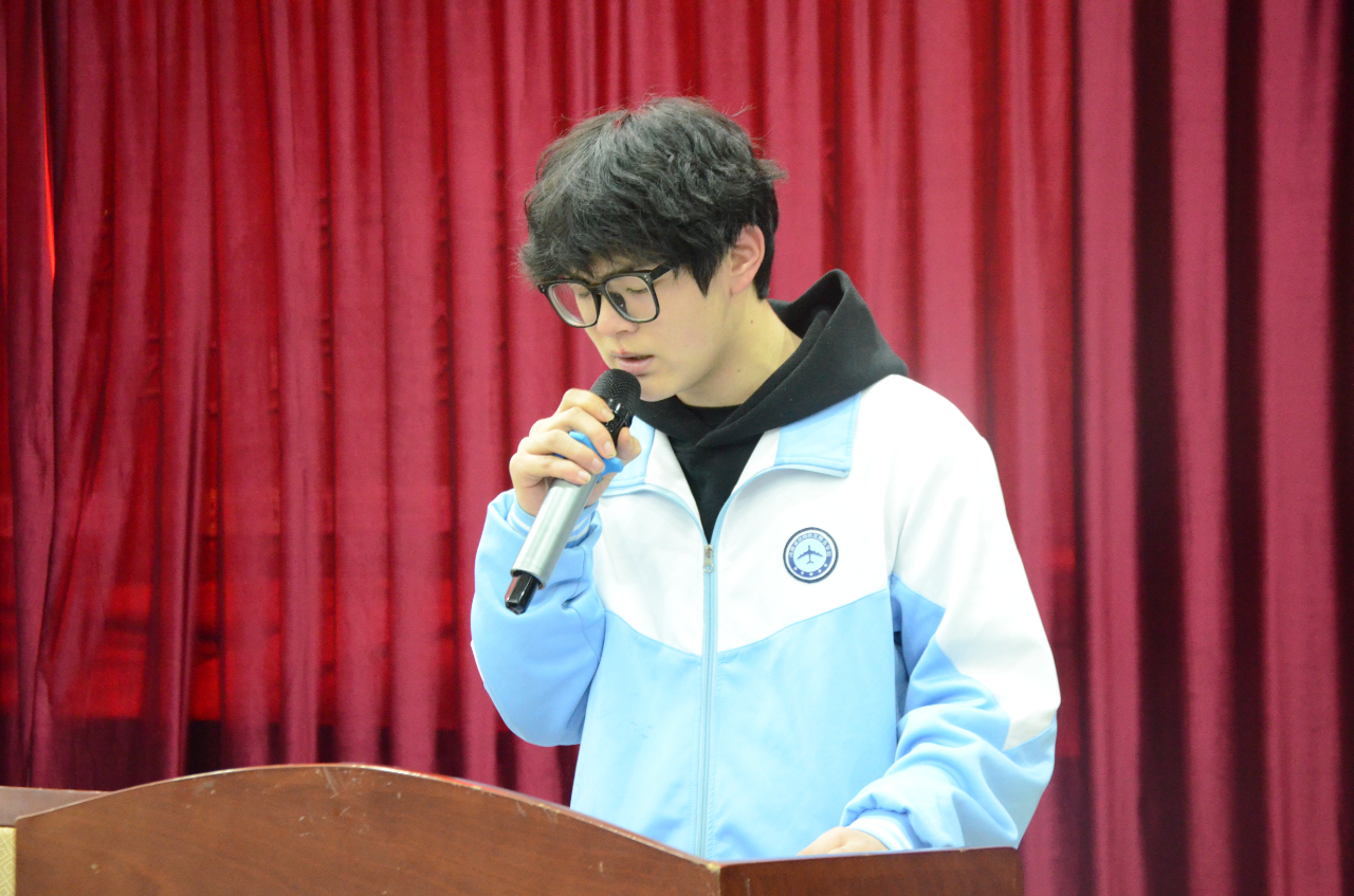 会议伊始,由23秋新能源3+2班的学生代表耿奥上台发言。他代表全体同学郑重表态,明确了面对转段考试与岗位实习的双重责任与决心。他号召全体同学以诚信为舵、以实干为帆,将决心转化为行动,在考场上证明学识,在岗位上创造价值,用青春汗水书写精彩篇章。